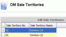 Sales Territories are used in the Customers table to define the sales territories. Sales Territories are assigned to ship-to customer types on the Reporting tab and are used for reporting purposes.