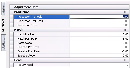 - Production Pre Peak represents the adjustment for percentage production that is required prior to peak production. The factor is entered as a percentage. The screen must be calculated for the data to be adjusted.