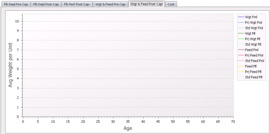 Displays Actual, Projected and Standards related to Female/Male weights and Feed consumed for Female and Male after the entity has been capitalized.