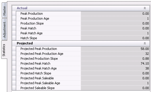 - Saleable Pre Peak represents the adjustment of saleable chick percentage that is required prior to peak production. The factor is entered as a percentage. The screen must be calculated for the data to be adjusted.