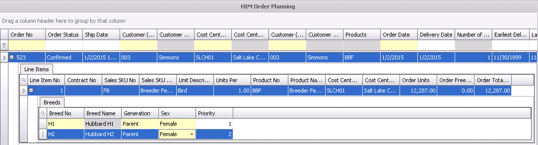 a new line will appear in the HIM Order Planning grid.