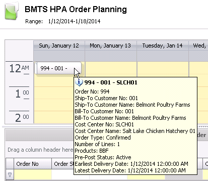The Sales Order Planning screen allows the user to enter egg and chick orders in a grid style format. The order planning screen is in a calendar format that allows the user to easily move around orders if required. Alternatively, sales orders can be entered individually in the Sales>Orders screen.