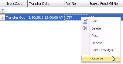 A Finished Feed Receiving transaction must be created and posted before a Finished Feed Facility Transfer can be created.