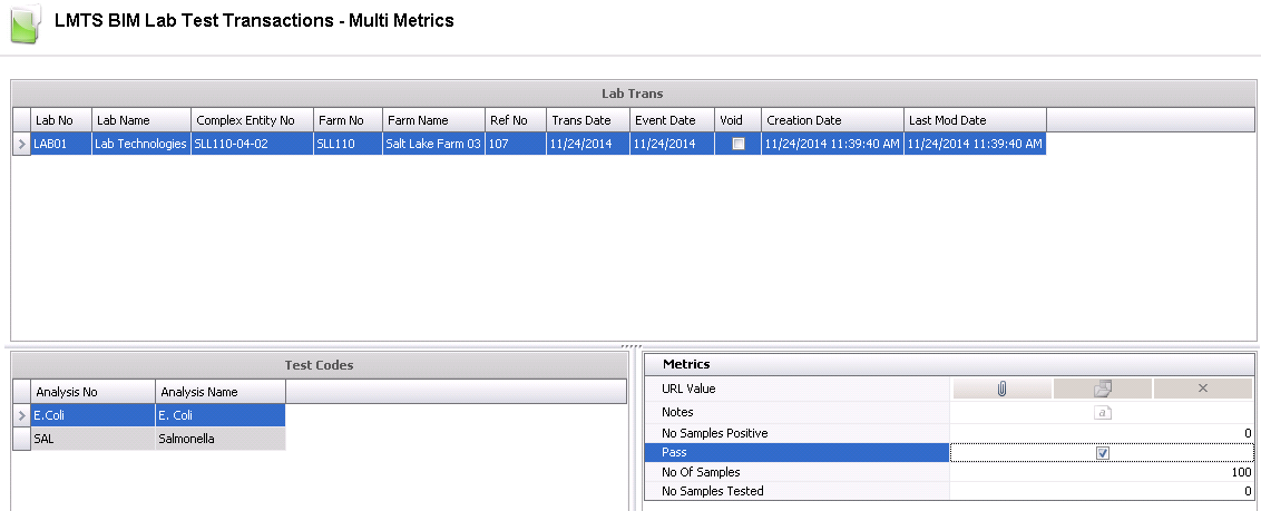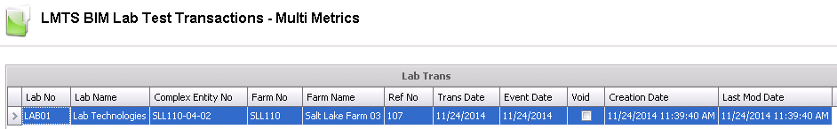 Lab tests are designed to record the test analysis administered to an entity and ensure that the eggs meet the standard requirements before processing and shipping to the customer. These test and the results are recorded in Lab Test. The lab test transaction identifies the product and feed mill being tested and the laboratory doing the testing.