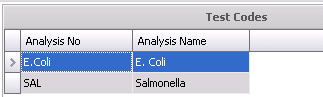Test Codes will default in and must be predefined in: Admin>Business>General>Definitions>Lab Test Codes.