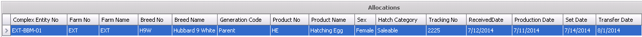 Tracking No displays the tracking number of the hatch eggs that have been received to inventory.