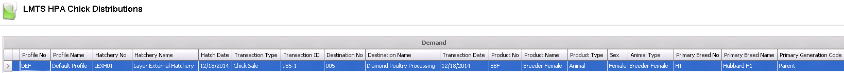 Transaction Type identifies the type of transaction for the chick demand.