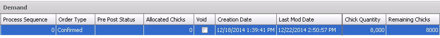 The Demand section is sourced from Sales Orders or BPA planned placements to determine the chick demand. The information will default in.