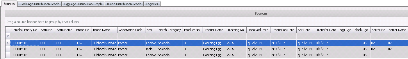 Sex identifies the sex of the entity. Chicks and poults will indicate Male, Female or Straight Run. Eggs and embryos will not have any sex defined.