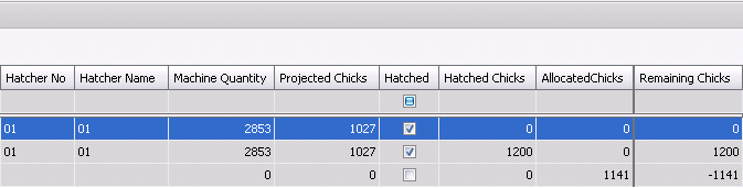 Projected Chicks is based on the eggs that have been allocated from HPA projected eggs. The field will calculate the projected chicks determined from the projected hatchability of the selected eggs.