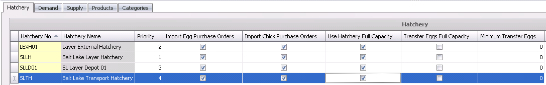 Select the Transfer Eggs Full Capacity flag to force the system to continue to transfer eggs until all of the hatchery capacities have been met or egg supply is exhausted.