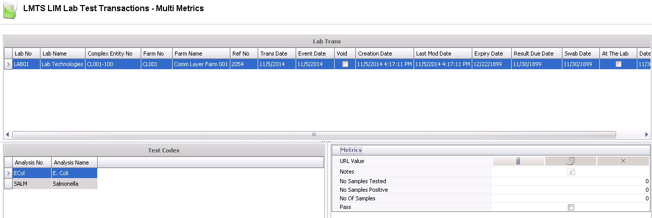 Metrics are user-defined and configured to the test codes so that the required information is gathered for each test code. Metrics must set up in: Admin>Business>General>Definitions>Lab Test>Lab Test Codes Metrics. .Metrics can be used for statistical and tracking information.