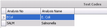 Test Codes will default in and must be predefined in: Admin>Business>General>Definitions>Lab Test Codes.