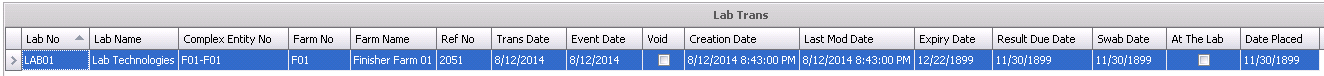 In the Trans Date field, enter the date of the lab test. This date will be used for all inventory and accounting transactions.
