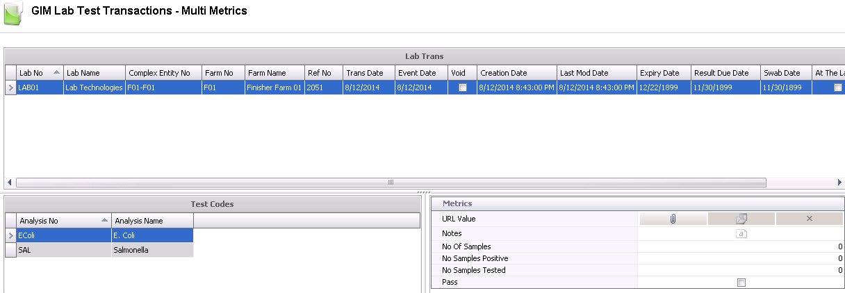 Metrics are user-defined and configured to the test codes so that the required information is gathered for each test code. Metrics must set up in: Admin>Business>General>Definitions>Lab Test>Lab Test Codes Metrics. .Metrics can be used for statistical and tracking information.