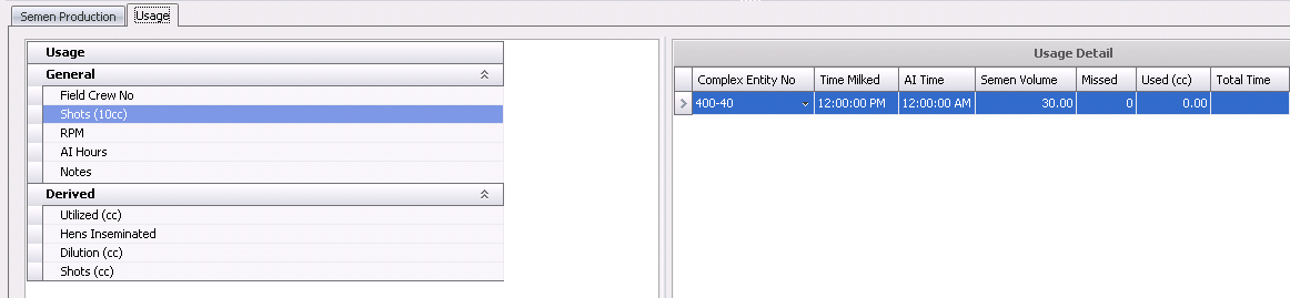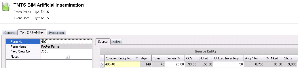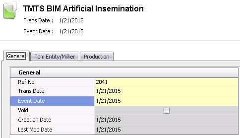 The following sections are outlined in the Entity Mode Artificial Insemination