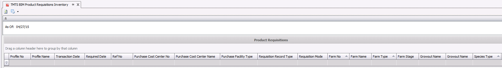 Product Requisition Inventory is a location to view product requisition inventory. The screen is read-only and cannot be modified.