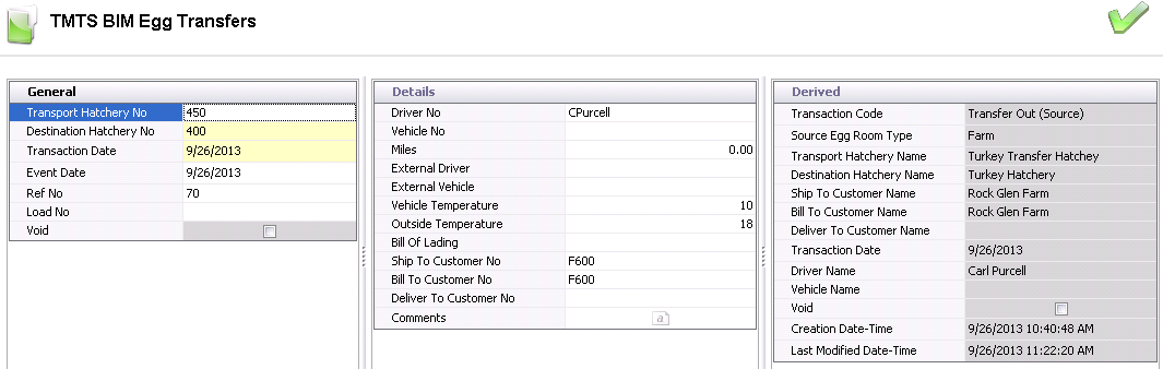 - In TMTS>HIM>Transactions>Eggs>Egg