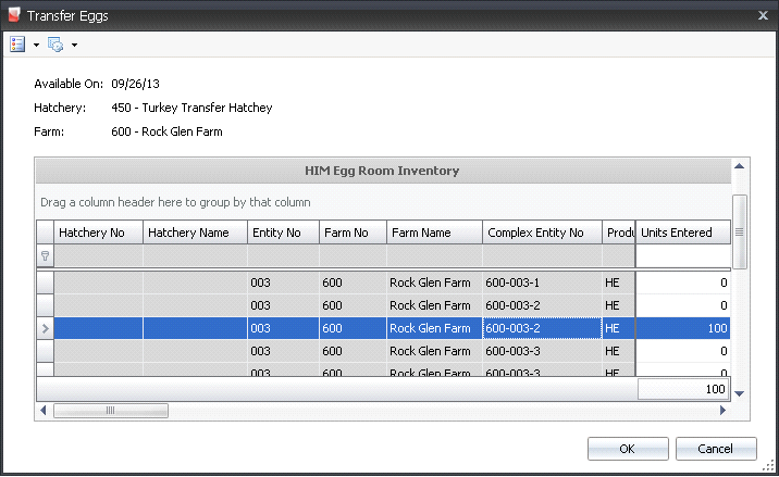 Egg Room Farm Transfers are used when the eggs are received to the HIM