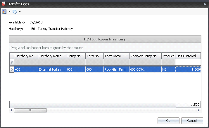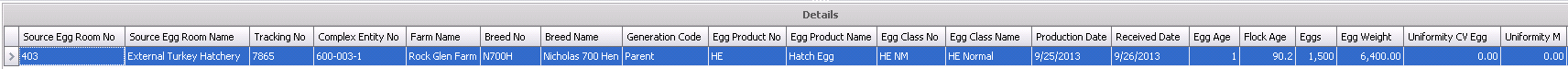 Egg Room Hatchery Transfers are used when the eggs are transferred from