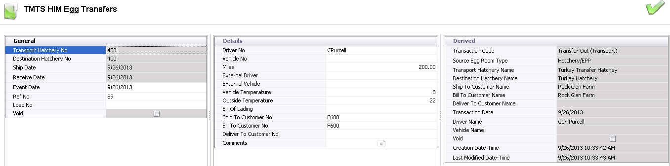 Once the egg room transfer transaction is saved and closed, the transaction