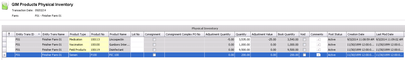 ID identifes the farm selected for the physical inventory adjustment.