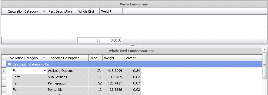 will need to be set up before entering condemnations, in: Admin>Business>Poultry>Definitions>Condemnation.