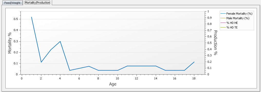 The Mortality/Production chart is a comparison for egg production against mortality, showing how the mortality affects the egg production