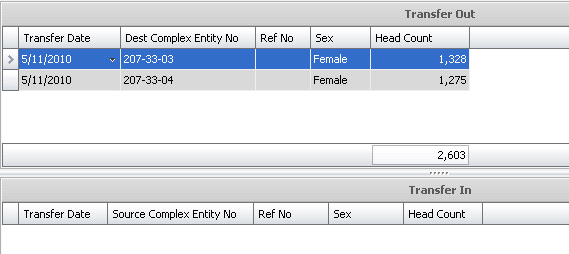 Last Date Moved Out indicates the last date the birds were moved out of the house. If posted from BPA, the date moved out is calculated based upon the Transfer Age in Breed Target. If the flock is created manually, the date will be derived from the Transfer Transaction at the time of transfer. If the entity is 'Brood' stage, at 24 weeks, the entity will be moved or transferred to the lay house. If the flock is 'Lay' stage, the moved date will represent the date the birds were sold.