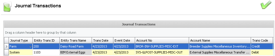Adjustment (To Flock) - Debit adjusts the quantity to the
