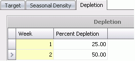 To enter the weeks and percent depopulation, set the focus in the Depletion