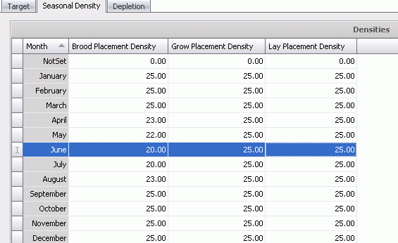 The Seasonal Density tab allows the user to define the density by month