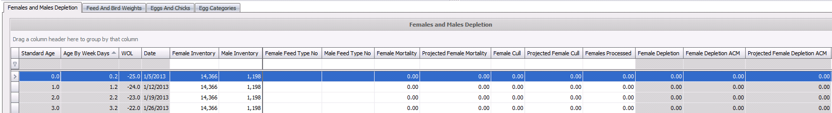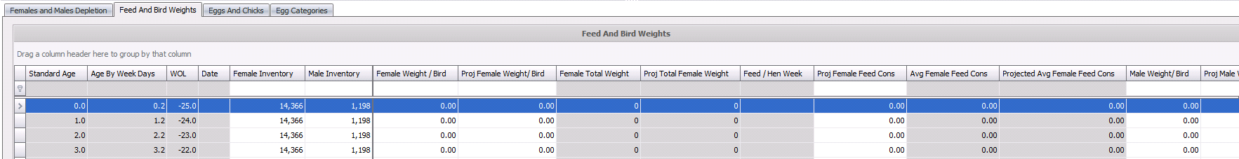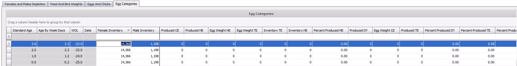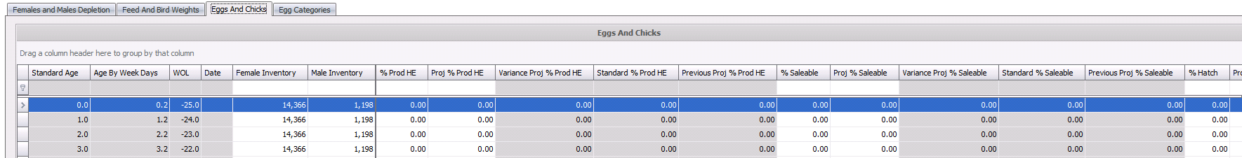 BIM\LIM Growout> Point of Lay> Standard Age Basis must be set