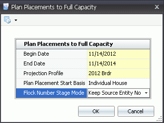 There are two options for the system to create a placement schedule: Plan Placements to Breed Targets, and Plan Placements to Full Capacity.