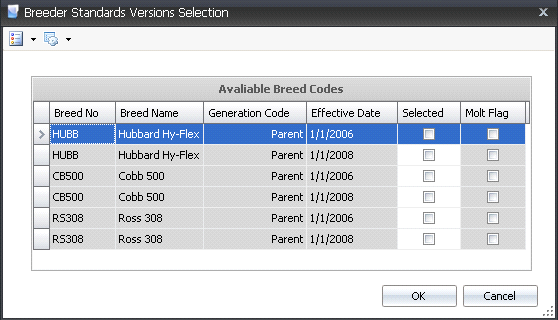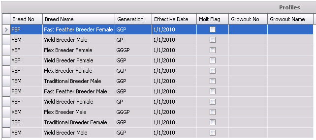 The Molt Flag will be selected if the breed is molted, and is derived from the Standards created in Master Data.