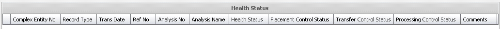The Health Status tab represents the most recent health status transactions based on the Lab Test transaction and/Entity Status transaction. The Entity Status transaction will always override the lab test transaction for the same test code. The variables of the health status are user defined in Lab Test Codes.