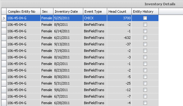 The information in the Hatchery Detail tab is derived from HIM Eggs Set and Chicks Hatched transactions, and is only used for Lay Entities.