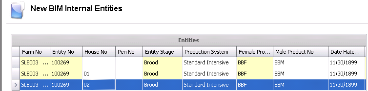 House No is used If the granularity is defined in Houses. If so, a house number can be assigned to the entity from a predefined list of houses for the farm. The house can only be assigned after the top level entity is created.