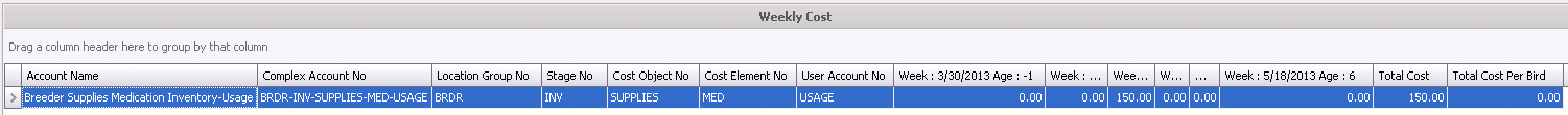 The Costs tab represents all of the costs associated with the flock and is broken down by the accounts set-up in the Chart of Accounts Master. Costs are derived from the journal transactions.