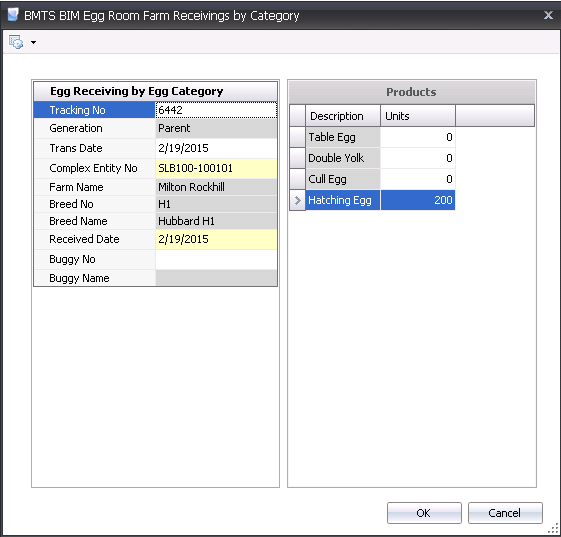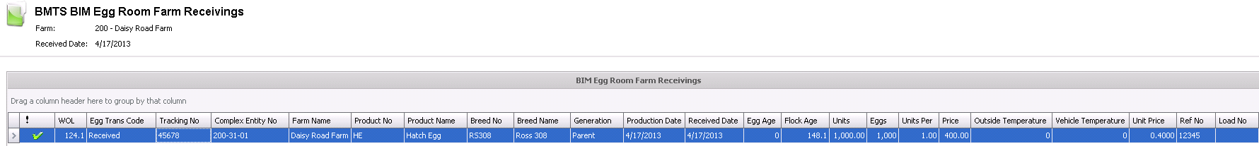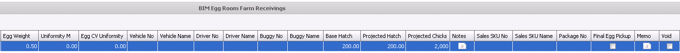 1. In BMTS>BIM>Transactions>Egg Room, select Farm Receivings.