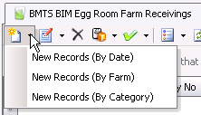 2. In the Egg Room Farm Receivings main index, click and select 'New Records (By Farm)'.