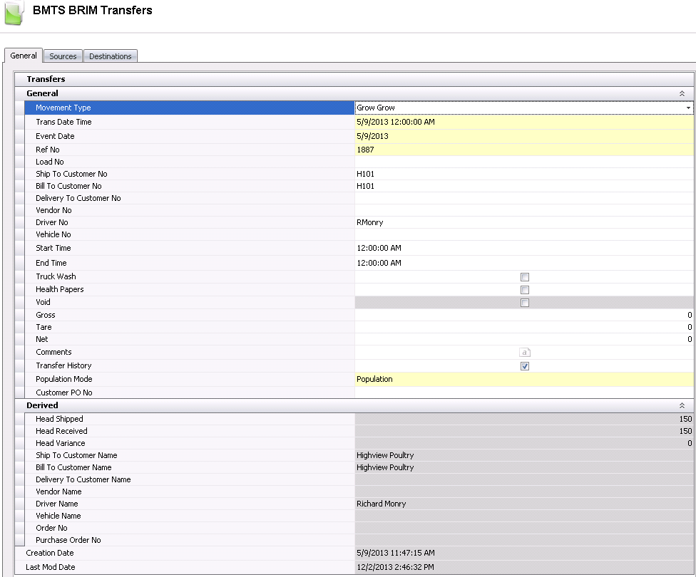 transfer. Drivers must be set up prior in: Admin>Business>General>Definitions>Drivers.