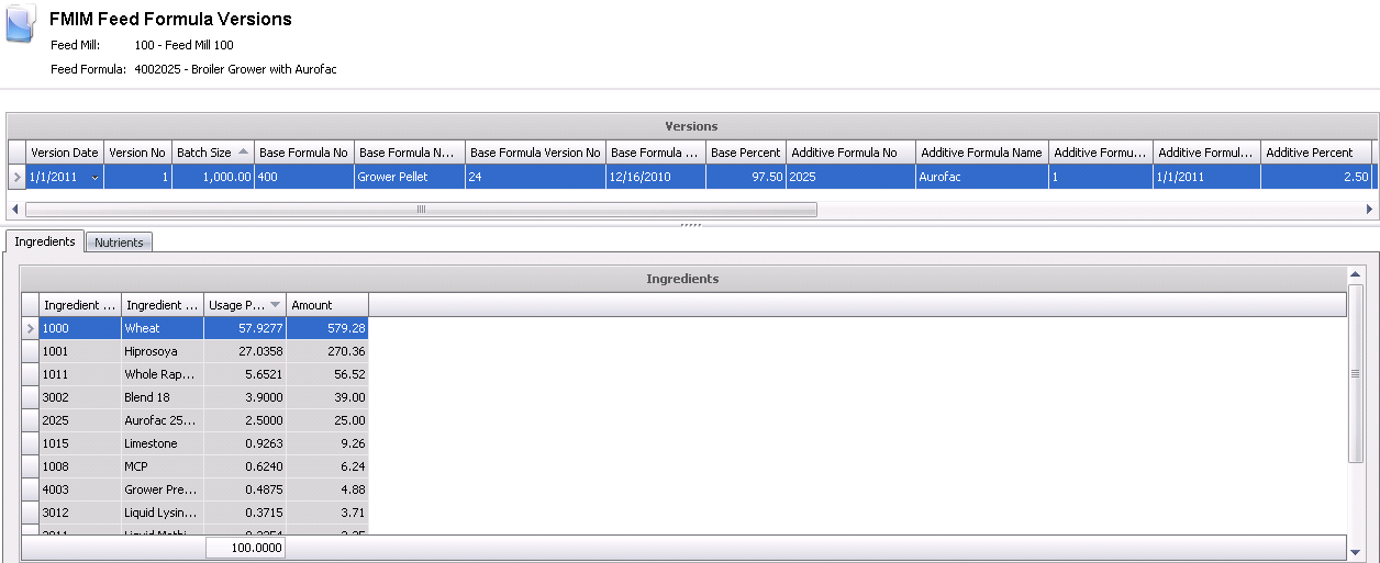 Nutrients will be derived based on the assigned bulk feed formula version.