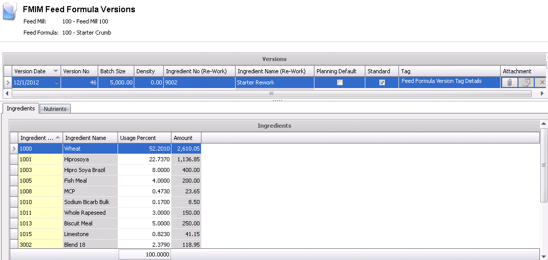The ingredients will be derived based on the assigned bulk feed formula version.