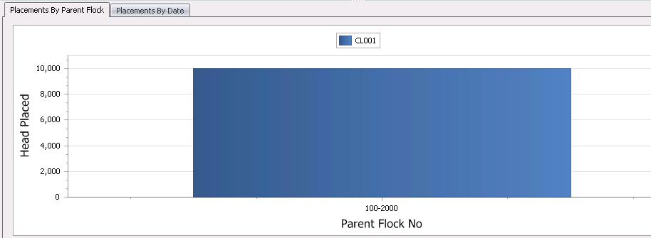 The Placements By Date tab contains a chart with information outlining how many birds were placed by date if the flock had multiple hatch or placement dates.