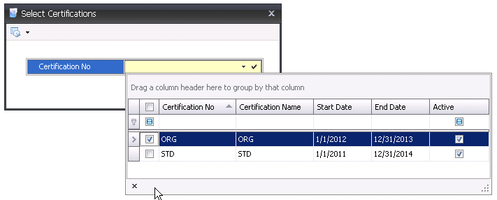 - In the Select Certifications dialog box, click
