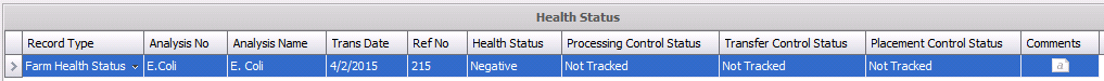most recent health status transactions based on the posted Farm