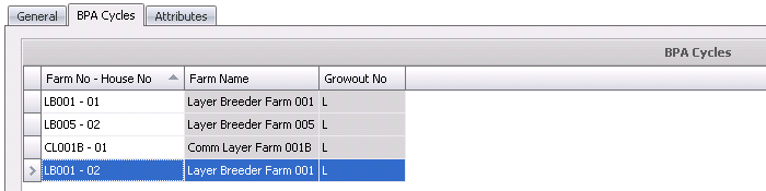 BPA Cycles are used for BPA planning. The BPA Cycles tab matches the Brood farms to the Lay Farms. On the Grow/Lay farms enter the brood farms that can be moved to that grow/lay farm. If the brood farm is not in the list (BPA Cycles tab), it cannot be moved to the grow/lay farm.