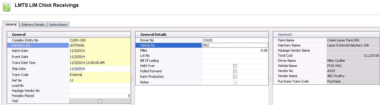 Vehicles must be set up prior in: Admin>Business>General>Definitions>Vehicles.