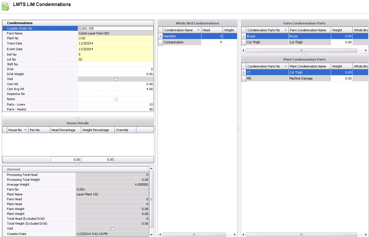 set up in: Admin>Business>Poultry>Definitions>Condemnation>Normalization